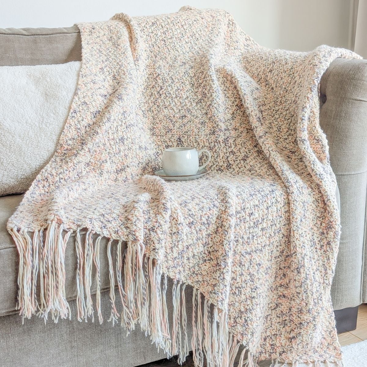 Add a breezy, coastal touch to your home with the Seabreeze Textured Fringe Blanket! This beginner-friendly crochet pattern uses simple stitches and soft cotton yarn …